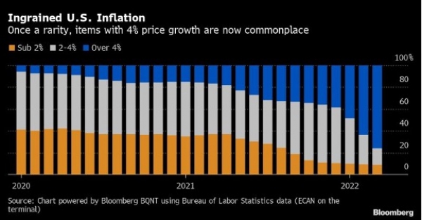 Another reason to be skeptical of the calls for peak inflation is that the median price increase camein at +0.48%, which is significantly higher than the core. And the last but very important point: headline US inflation didn’t just reach a fresh 4 decades high of 8.5% in March, it also got wider (see chart below). 76% of the goods and services measured by the Bureau of Labor Statistics saw gains of at least 4% YoY. That’s up from just two-thirds in February, and less than 5% at the end-2019. We are thus NOT yet out of the woods...